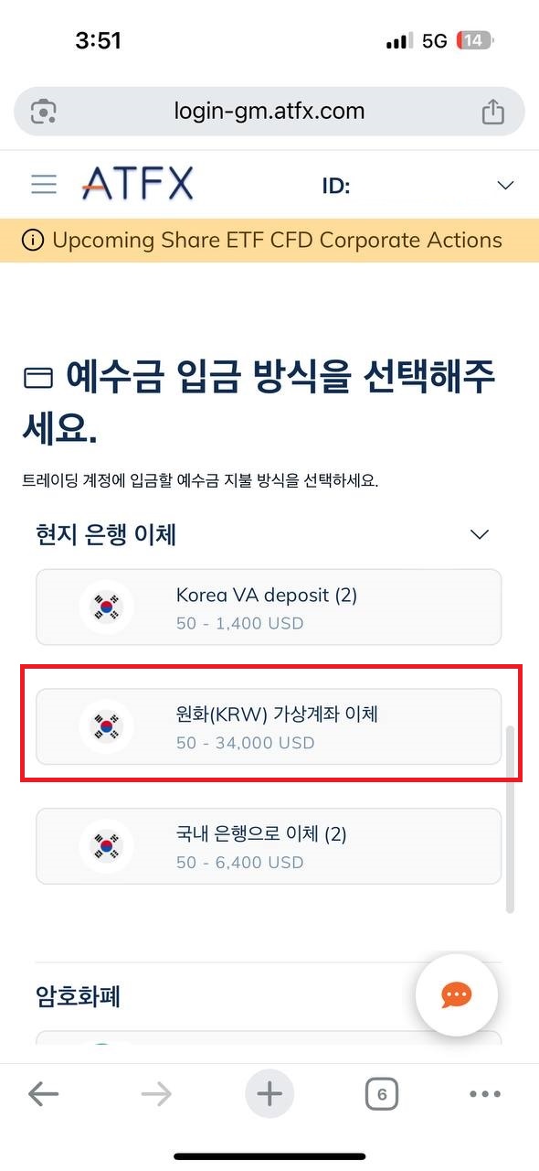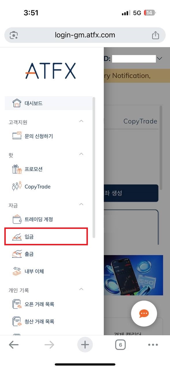 해외선물 ATFX 입금하기 (모바일)